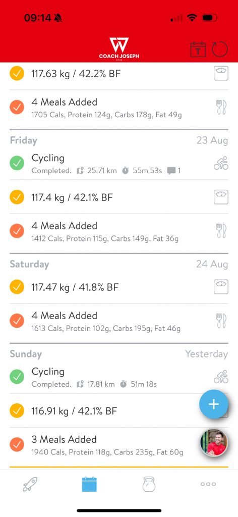 Re the image on the right, I did do a workout on the Saturday but managed to delete it from the app. Doh!
