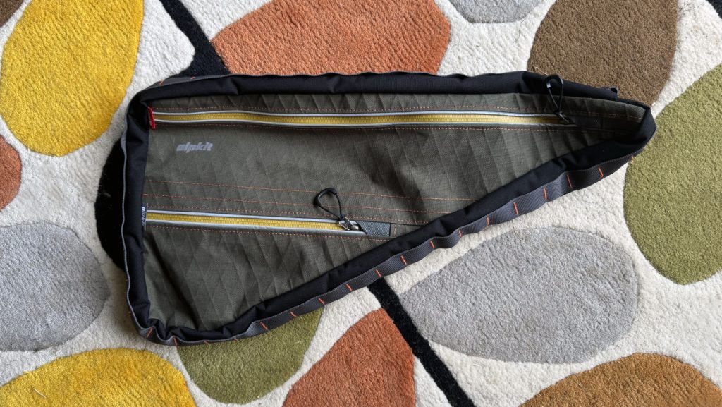 Re-worked frame bag arrived from Alpkit and I LOVE it! Took it out for a test ride and the added width is not an issue (thought my legs might brush against it.