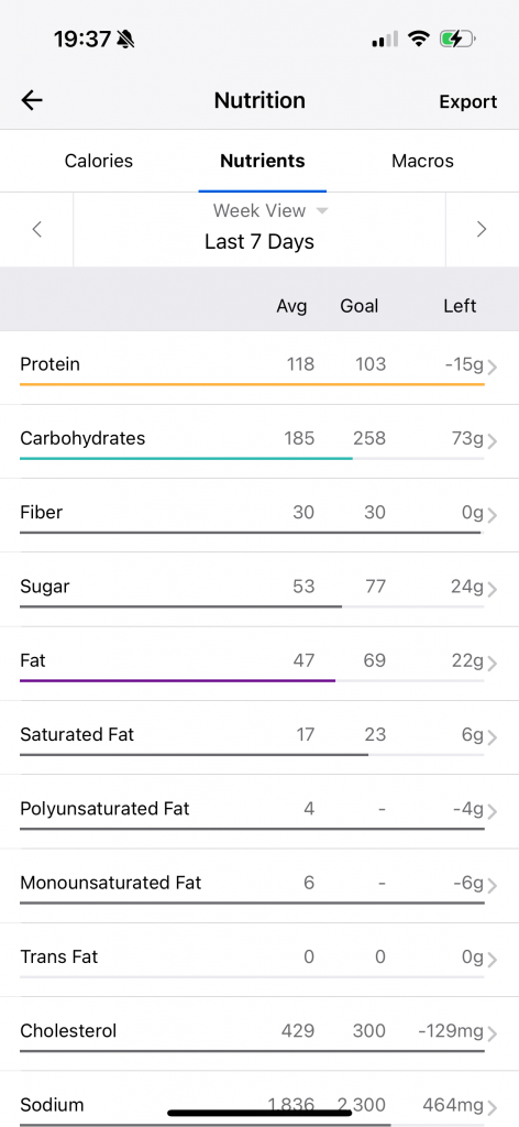 It’s a drag logging meals and activities but I do love data and am seeing some real impacts; resting heart rate down to 41 and blood pressure is lower 🙂